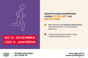 Saskaņā ar 2020.gada 17.decembra Ministru kabineta rīkojumu Nr.655 “Par ārkārtējās situācijas izsludināšanu” no 2020.gada 21.decembra līdz 2021.gada 11...