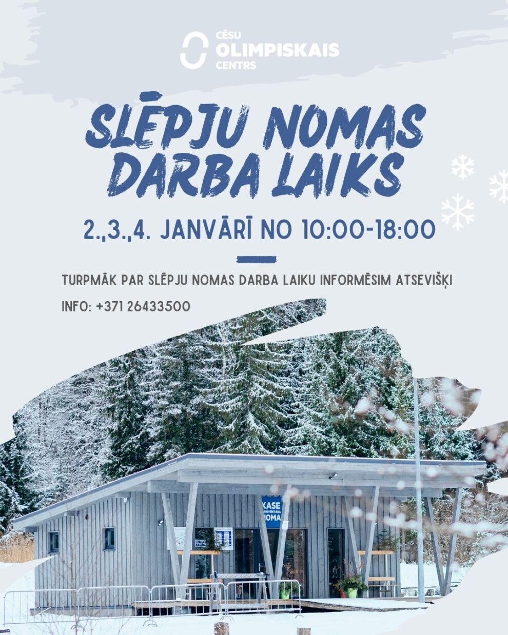 📢 Svarīga informācija par slēpju nomu darba laiku gada sākumā!