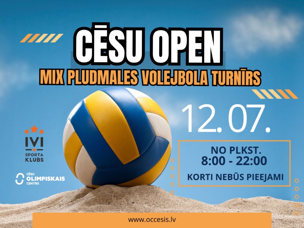 turnīra laikā visi četri pludmales volejbola korti Cēsu pilsētas stadionā nebūs pieejami publiskai lietošanai no plkst. 8:00 līdz 22:00.
