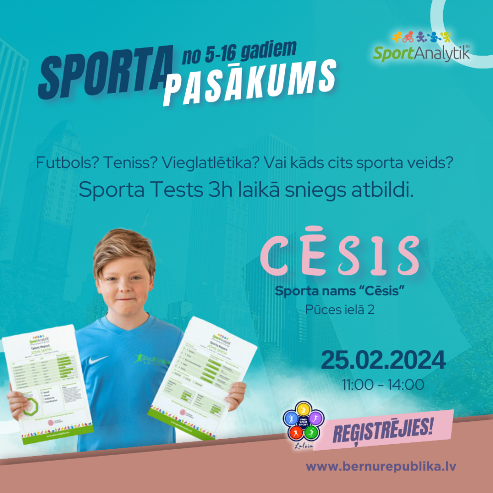 Programma FIND YOUR SPORT® sadarbībā ar Pasaules bērnu sporta testa programmu SportAnalytik™ ir radījuši iespēju bērniem ATRAST savu sporta veidu 3 stundās!