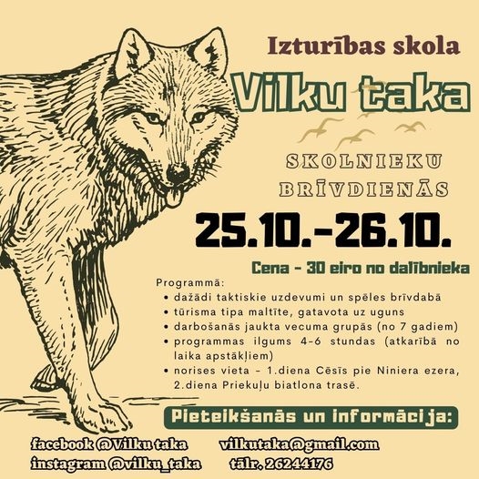 Ja vēlies foršu piedzīvojumu, aizmirst garlaicību un iegūt jaunus draugus, nāc uz Vilku takas Izturības skolu rudens skolas brīvlaikā!
